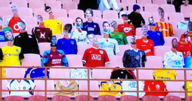 Recientemente, aficionados de Estados Unidos y Canadá además de otros cuatro países ya compraron doce entradas para aficionados virtuales, y si el juego no es muy divertido al menos se entretienen buscando sus rostros entre los maniquíes.
