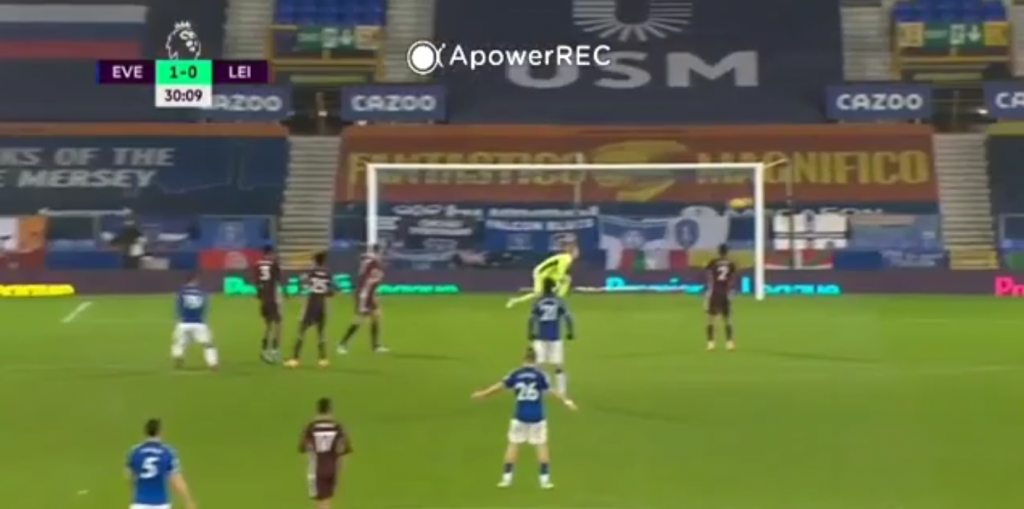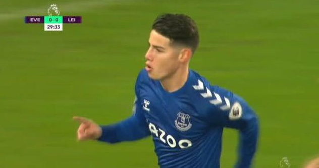 Con un remate desde el borde del área y con pierna derecha, el colombiano James Rodríguez abrió el marcador en el choque entre Everton y Leicester en Goodison Park.