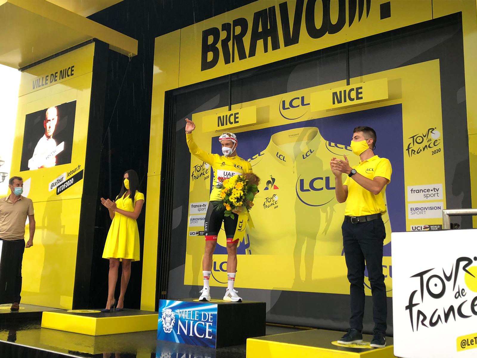 ¡El noruego (Emiratos Árabes Unidos) gobierna el sprint y gana la etapa! Toma el maillot amarillo. Thibaut Pinot, tras su caída, cruzó la línea con gran retraso. El francés va acompañado de varios miembros de su equipo y es golpeado en el flanco derecho … Habiéndose producido la caída en los últimos tres km, los tiempos se han detenido.El top 5 del escenario:1. Alexander Kristoff2. Mads Pedersen3. Cees Bol4. Sam Bennett5. Peter Sagan.